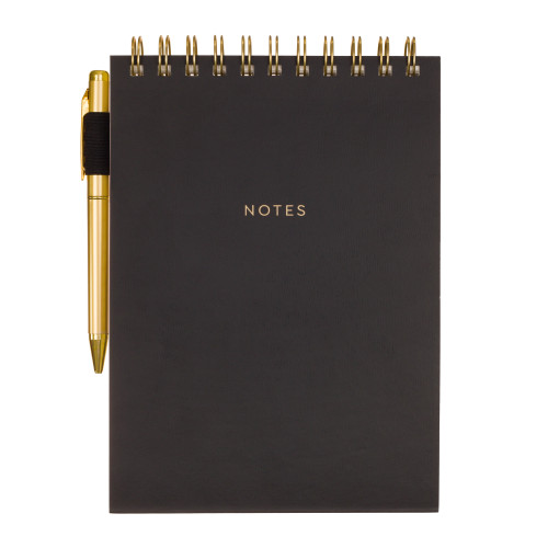 Eccolo’s steno pad features a sleek black cover with beautiful gold foil details and durable double wire binding. Filled with 120 sheets and complete with a pen and matching elastic pen loop - Ecolo’s is the go-to pad for stylish stationery lovers on-the-go.